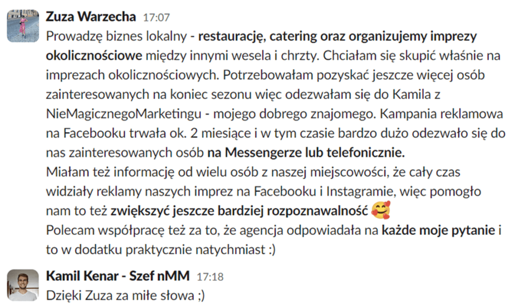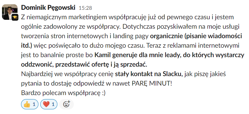 „…dzięki Ci Kamil i serdecznie polecam współpracę z (nie)MagicznymMarketingiem…”